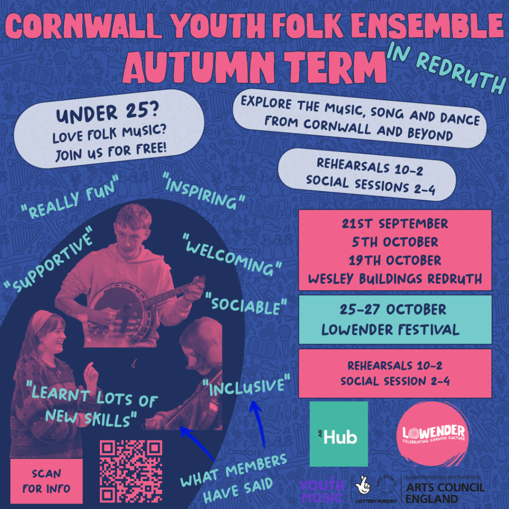 On Friday 25th October the ensemble are invited to share what they’ve learnt at the Thriving Traditions Concert at the Lowender Celtic Festival in Redruth (but no one is obliged to perform if they don’t feel comfortable).